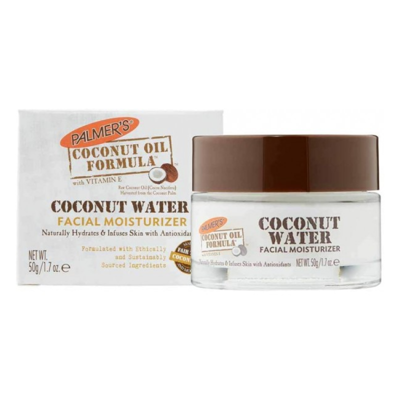Хидратиращ крем за лице с кокосова вода на Palmer’s представлява ежедневна грижа с неповторими съставки за дълбока хидратация с кокосово масло обогатено с витамин Е, насищаща кожата с антиоксиданти и хиалуронова киселина, стимулиращи нейната хидратация и придаващи неповторим сияен вид. Хидратиращата формула с кокосова вода придава на кожата незабавна свежест, еластичност и хидратация.