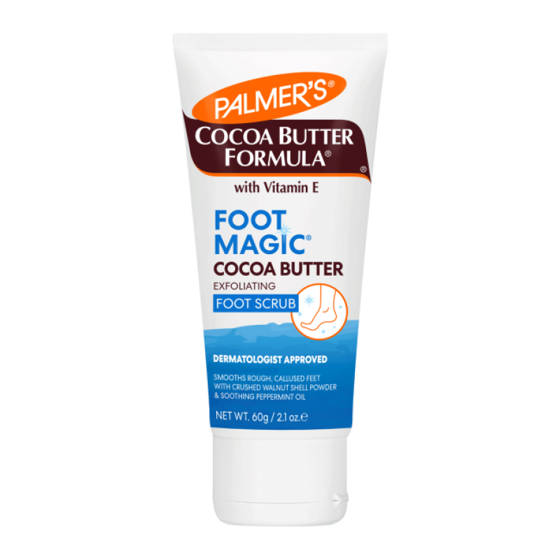 Exfoliate and soften extremely rough, callused feet with Palmer’s Cocoa Butter Formula Foot Magic Foot Scrub, crafted with rich, moisturizing Cocoa Butter, soothing Peppermint Oil and natural exfoliating Walnut Shell Extract. Buffs away dead skin to soften and smooth even the roughest, most callused skin.