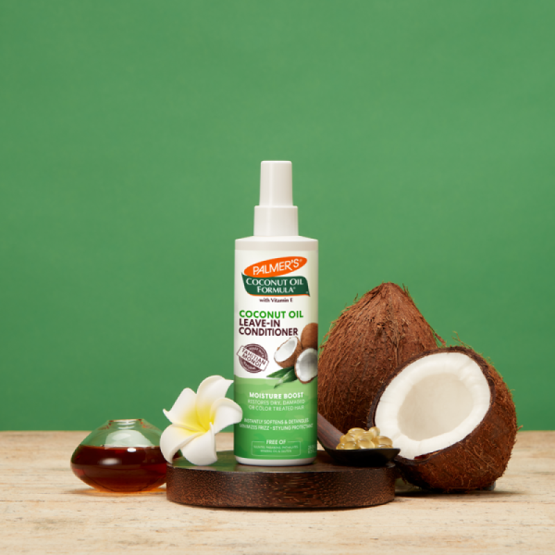 Palmer’s Coconut Oil Formula Moisture Boost range restores hair experiencing dryness or damage with natural reparatives that instantly and deeply lock in moisture from root to tip, visibly improving your hair’s condition after use.For silky, soft and hydrated hair.Multi-Award Winning Leave-In Conditioner. Defends against styling damage Improves comb-through and manageability.Provides long lasting hydration to hair and scalp Leaves hair silky, smooth and ready for styling.Suitable for Vegans Directions:After shampooing and conditioning with Palmer’s Coconut Oil Formula Moisture Boost, spray directly onto damp hair in even sections. Can also be applied on dry hair to add additional moisture.