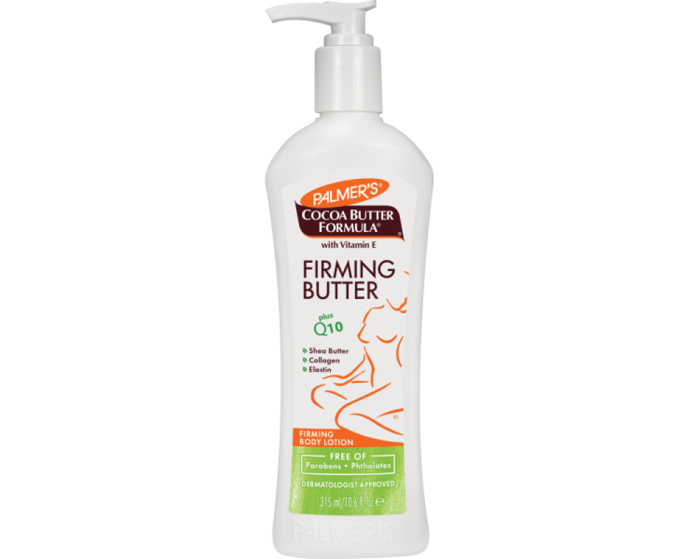 Стягащ лосион Palmer's с чисто какаово масло, обогатено с витамин Е, жен шен, масло от шеа и Q10+ ензим, са изключителна богата комбинация, действаща за по-бързо и ефикасно стягане на кожата, като същевременно предпазва от образуване стрии при събирането на кожата от загуба на тегло и е препоръчителен за по - бързо възстановяване на кожата след раждане или при нужда от стягане на кожата. Богат на антиоксиданти лосионът подхранва, хидратира и изглажда кожата в дълбочина, освен това женшенът и витамин Е спомагат за подхранване и подмладяване на уморената кожа.