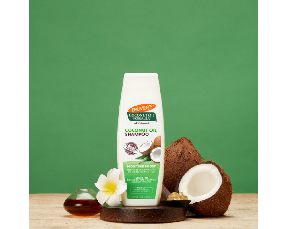 Кремообразен шампоан за коса с кокосово масло от Palmer's представлява нежна измиваща формула обогатена с таитянско масло от маной предназначена за възстановяването на суха, изтощена и боядисвана коса. Деликатно почиства, като едновременно запазва естествения баланс. Богат на сурови естествени съставки, които подхранват и хидратират косъма в дълбочина от корена до върха. Предотвратява накъсването. Богат на протеин и кератин спомага за подсилване и укрепване на косъма. Изключително подходящ при третирана и изтощена коса. Придава жизненост и блясък. Има неповторим кокосов аромат.