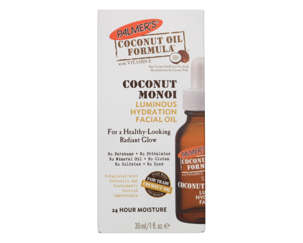 Oзаряващо масло-олио за лице Palmer’s съчетава висококачествено „Eкстра Върджин“ кокосово масло + 9 неповторими подхранващи масла за повишаване хидратацията и озаряването на кожата, така че тя да изглежда здрава и сияйна. Спомага за поддържането на оптималното ниво на влага в кожата, като балансира нейното омазняване и компенсира сухотата й. Комбинация от 10 обичащи кожата, естествени масла, хидратиращи я 24 часа.